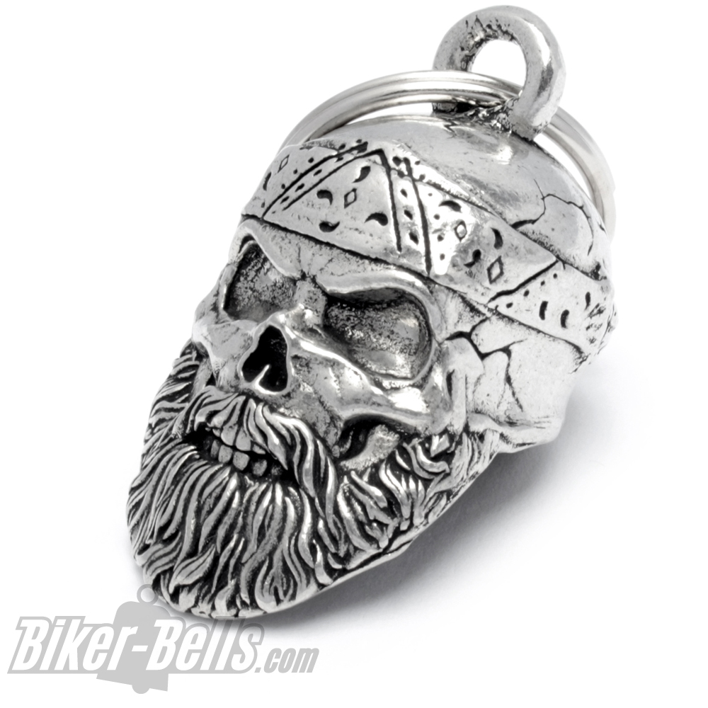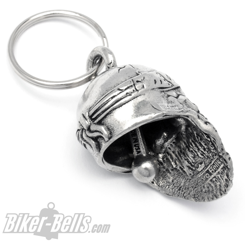 Startseite » Biker-Bells kaufen » Bravo Bells » 3D Oldschool Biker Totenkopf mit Bart und Bandana Biker-Bell Motorrad Glocke