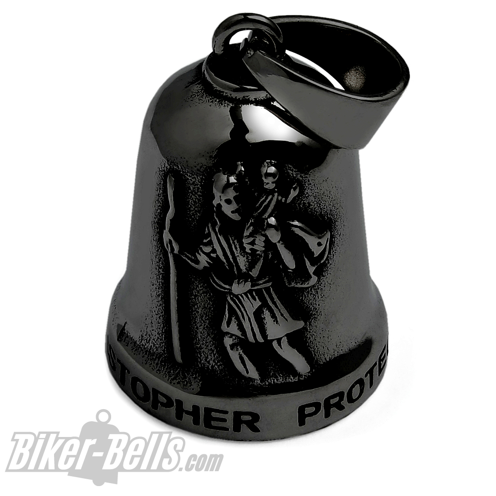 Main page » Buy some Biker-Bells » Road Bells » Black Biker Bell St. Christopher Patron Saint of Travellers 316L Stainless Steel