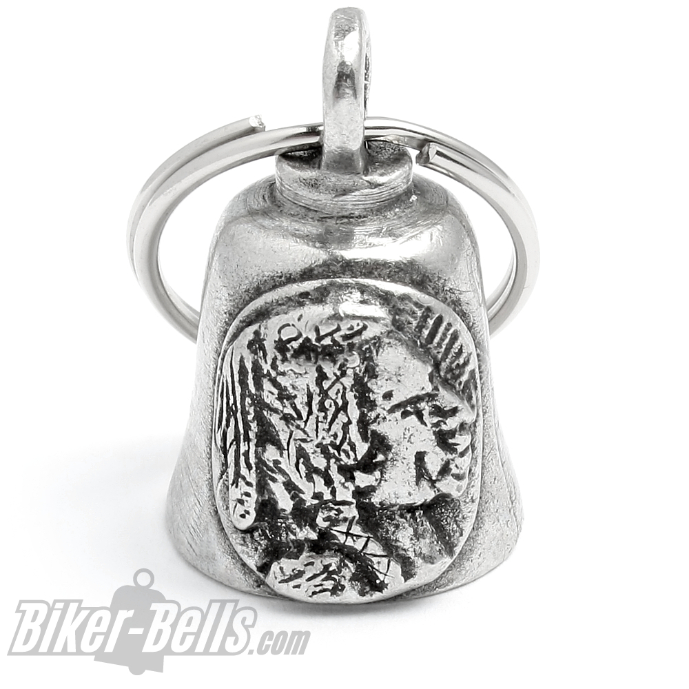 Startseite » Biker-Bells kaufen » Gremlin Bells » Indian Head Nickel Gremlin Bell Motorrad Glücksbringer mit stolzem Indianer Kopf