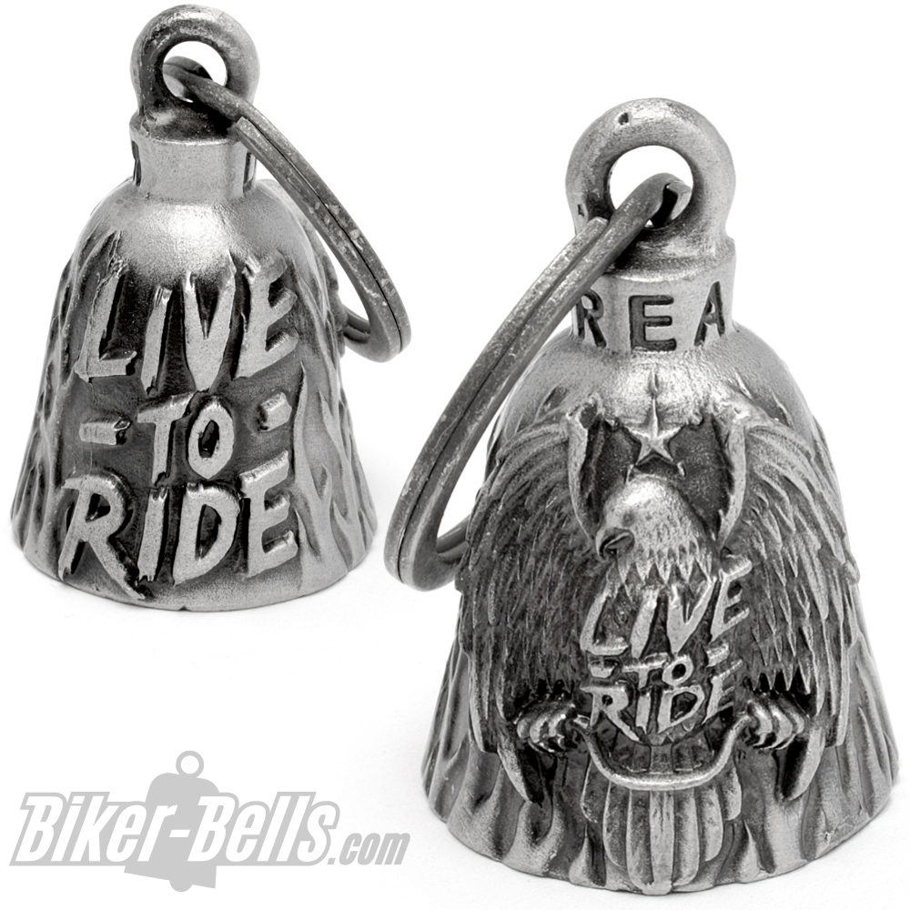 Startseite » Biker-Bells kaufen » Dream Bells » Live To Ride Biker-Bell mit großem Adler Motorrad-Glocke Glücksbringer Geschenk