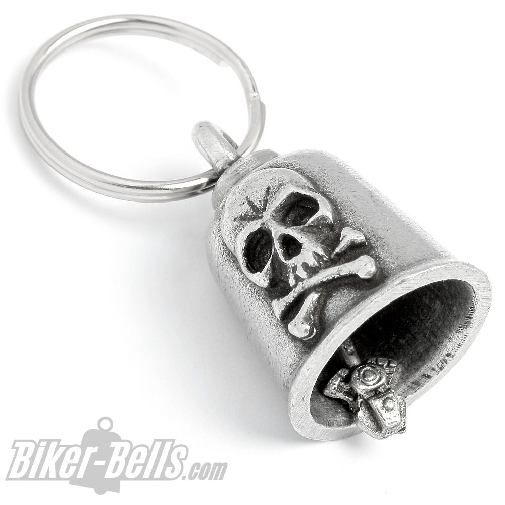 Startseite » Biker-Bells kaufen » Gremlin Bells » Totenkopf Gremlin Bell mit gekreuzten Knochen Motorrad-Glocke Glücksbringer Geschenk